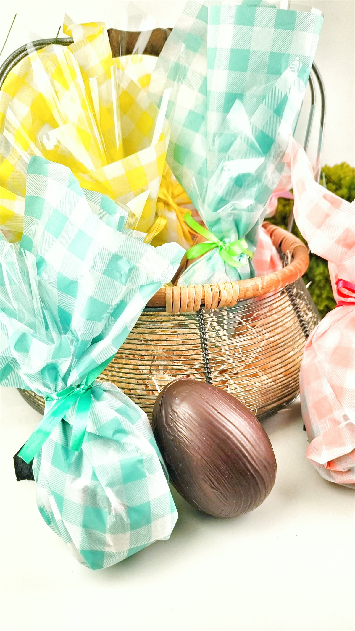 A cacher dans le jardin, nous vous proposons nos oeufs vichy, garni de friture en chocolat noir